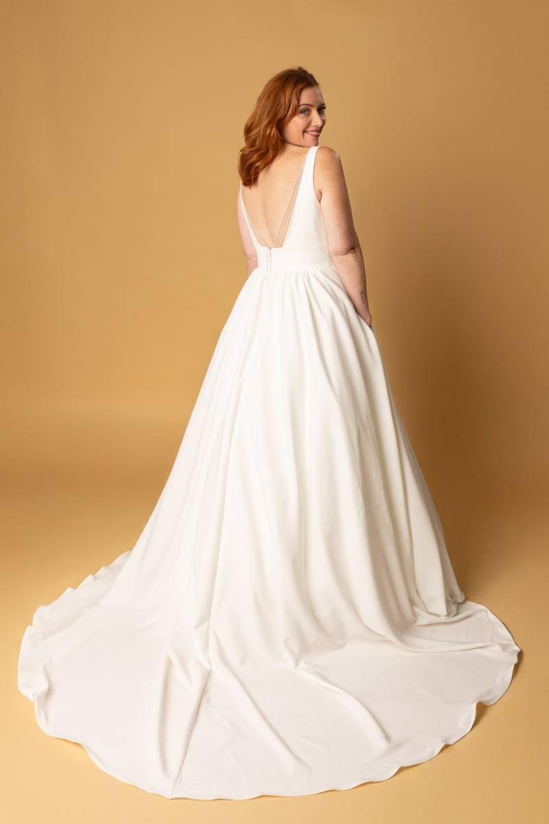 Le modèle Adrianna est une robe de mariée à la coupe princesse et de style chic.