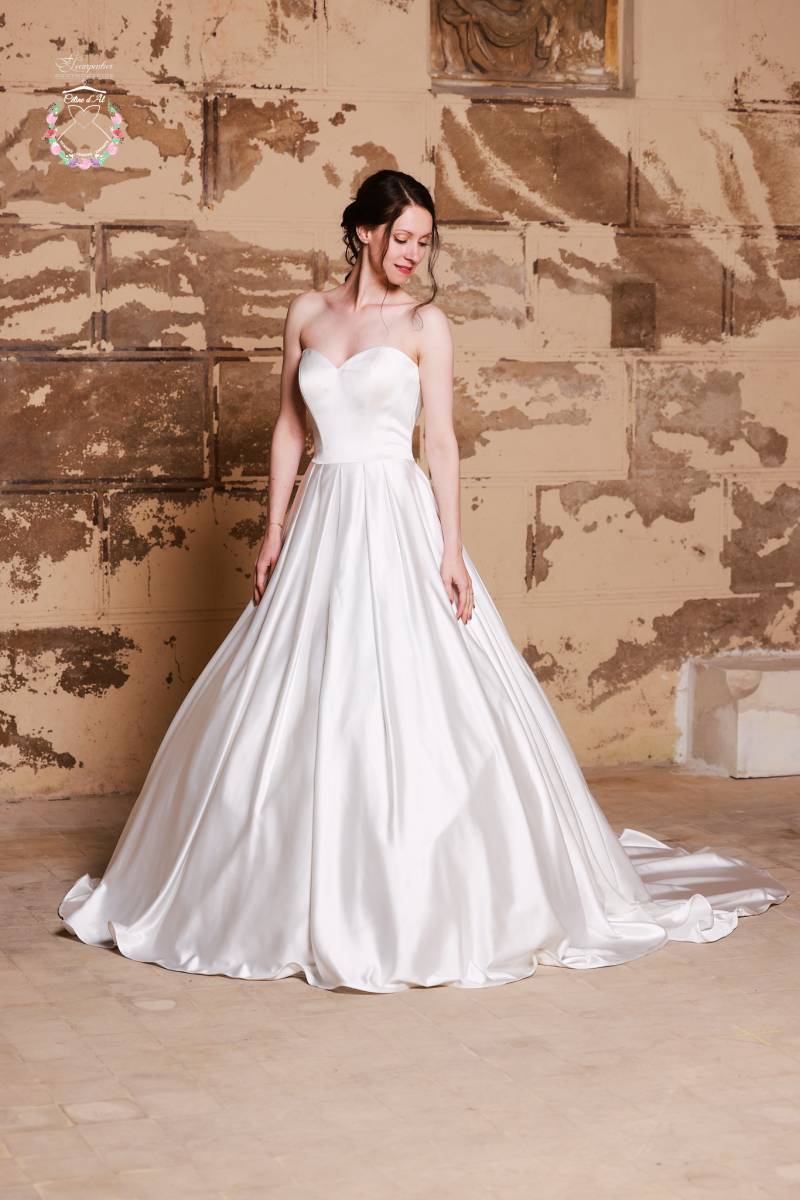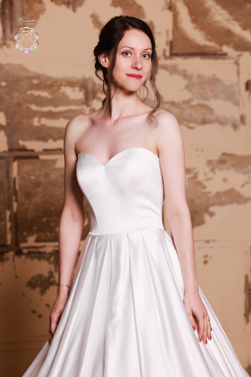 Elle vous propose un buste tout en satin avec une encolure coeur pour mettre en valeur votre poitrine et dégager vos épaules.