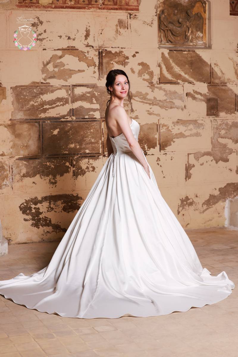Vous aurez au dos une jolie terminaison de boutons accompagnée d'une longue traîne.