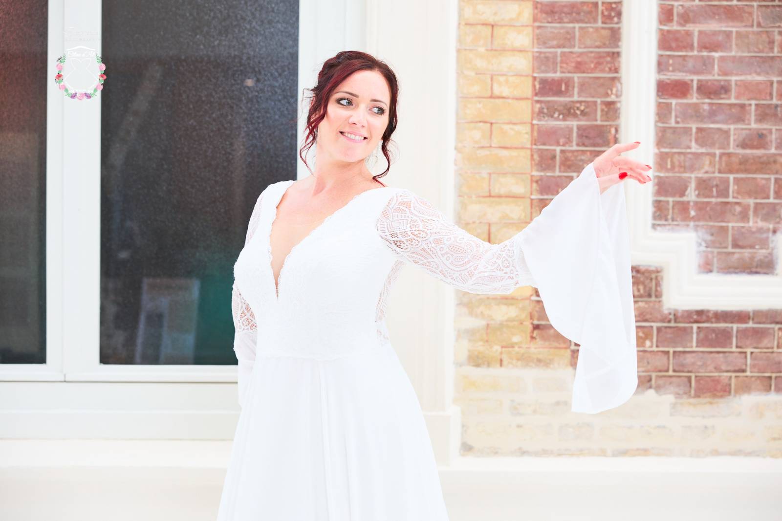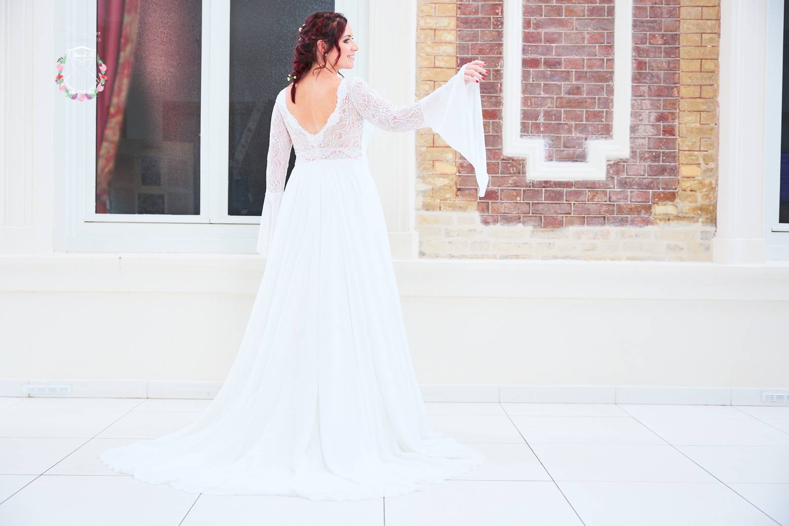 Ses manches longues à l'espagnole, en dentelle et en mousseline, vous donneront un style bohème.