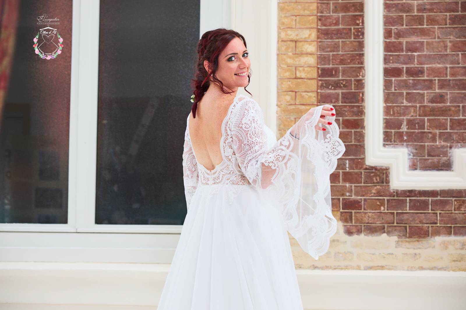 Sa jupe en tulle fluide accompagnée de sa légère traîne vous donnera un côté bohème