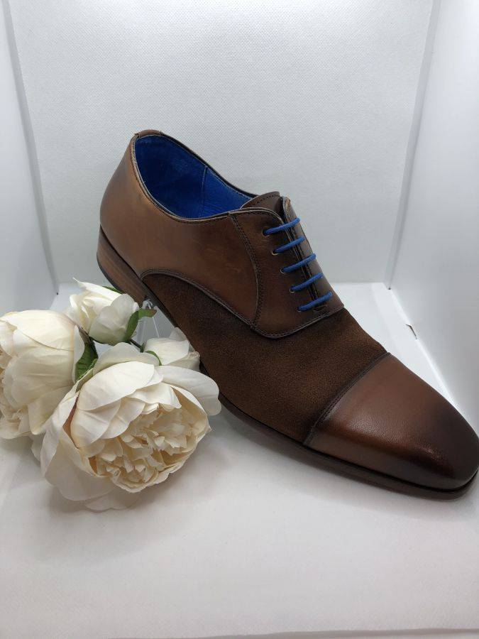 Chaussures JARNO en cuir et croûte de veau, couleur camel.