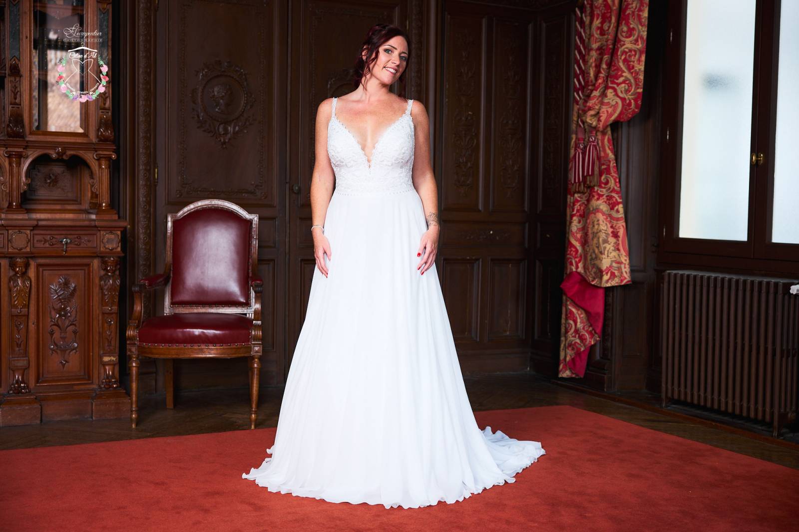 Le modèle Clara est une robe de mariée à la coupe trapèze.