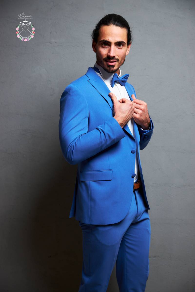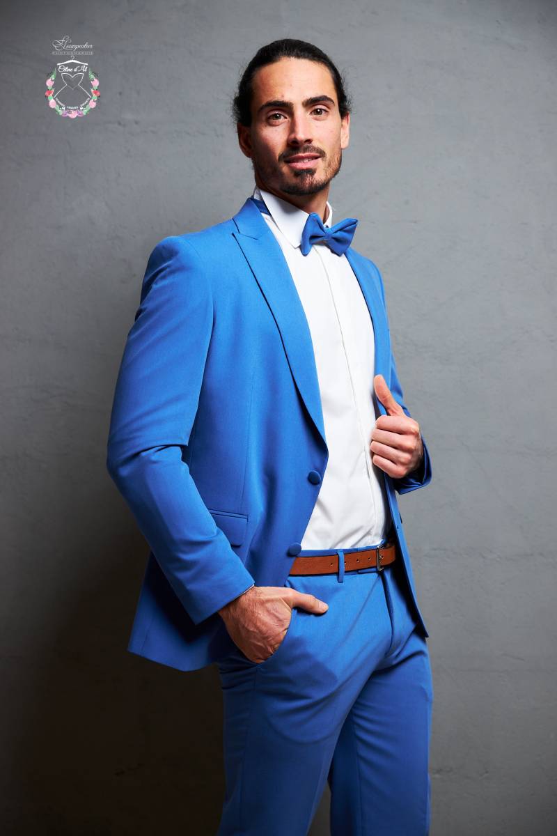 Il est composé de 3 pièces comprenant la veste, le pantalon et le noeud papillon.