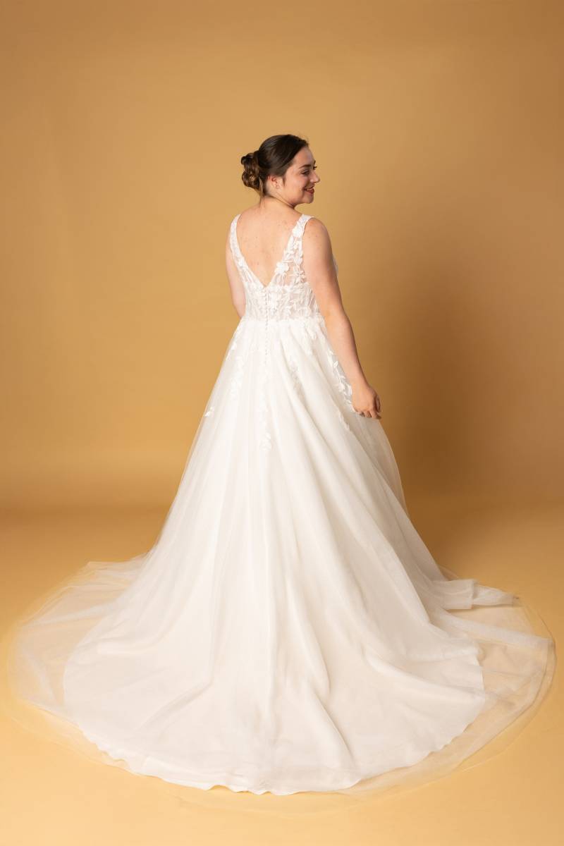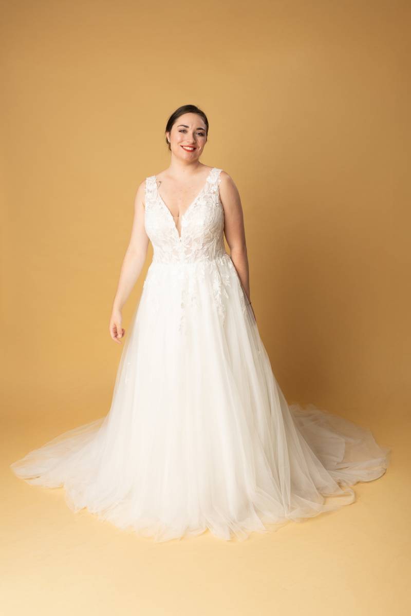 Le modèle Cyra est une robe de mariée de style princesse.