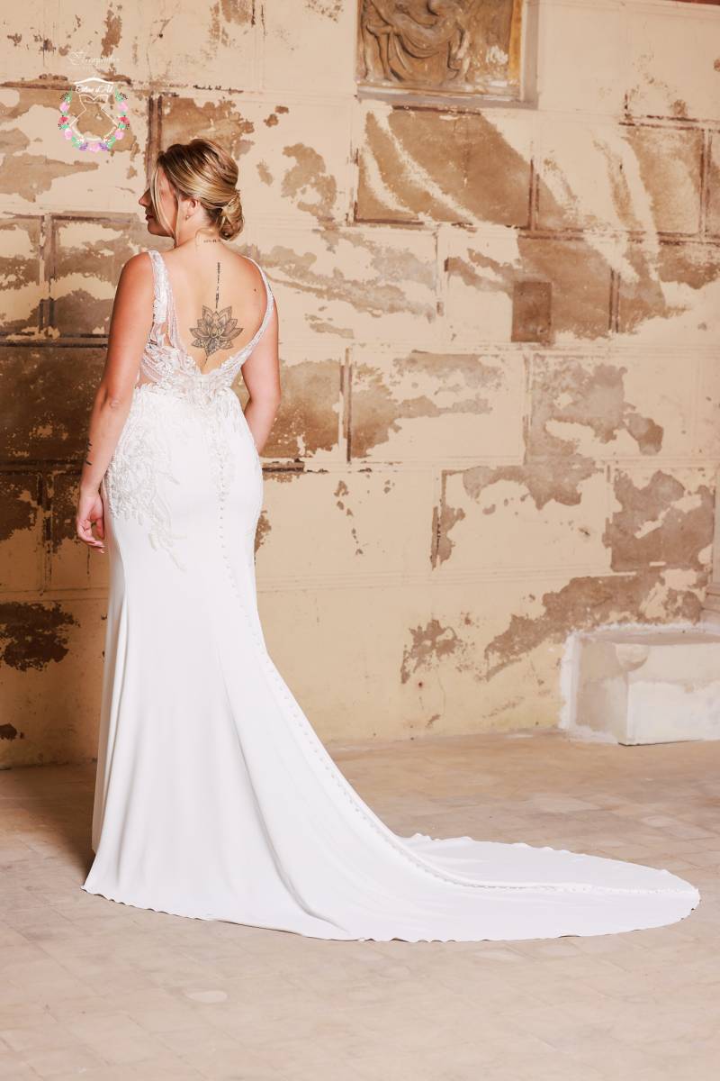 La coupe sirène permettra de mettre en valeur votre taille ainsi que de souligner vos formes avec des dentelles qui descendent le long des hanches.