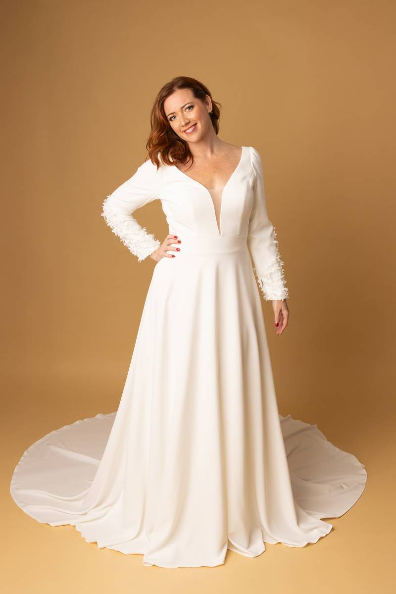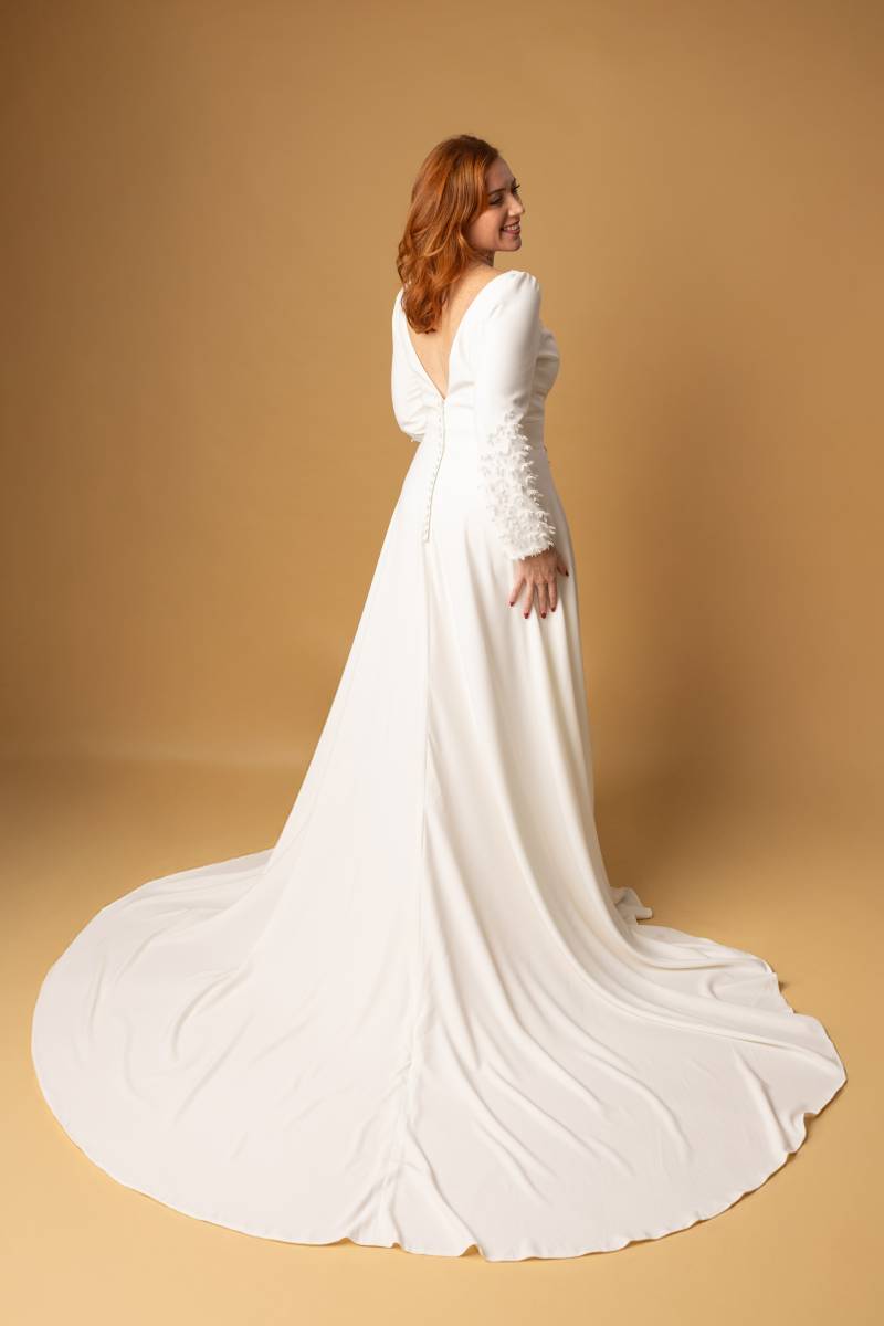 Le modèle Flora est une robe de mariée près du corps et de style élégant.