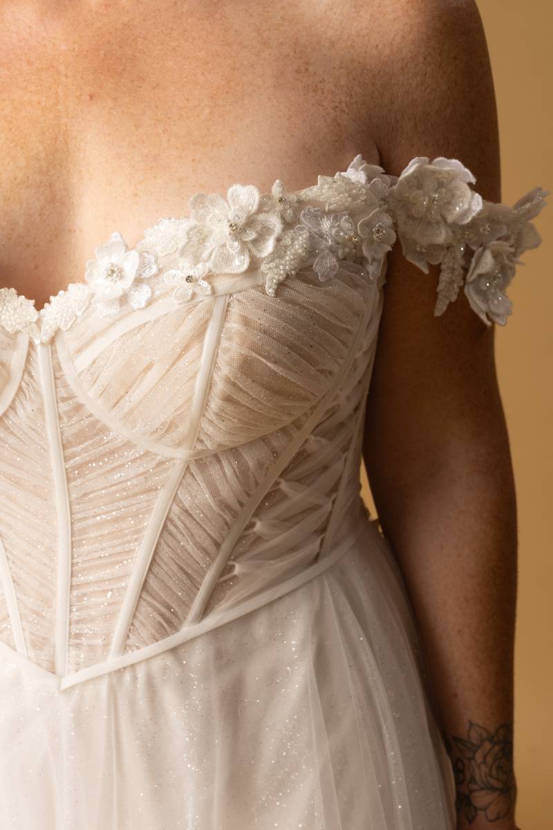 Le modèle Hajar est une robe de mariée près du corps et de style original.