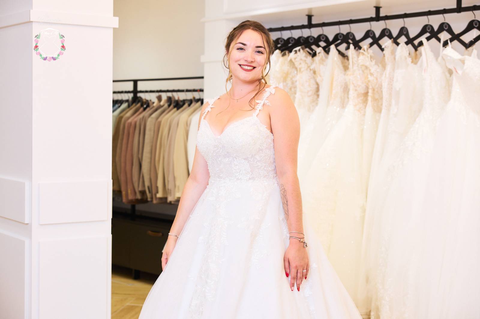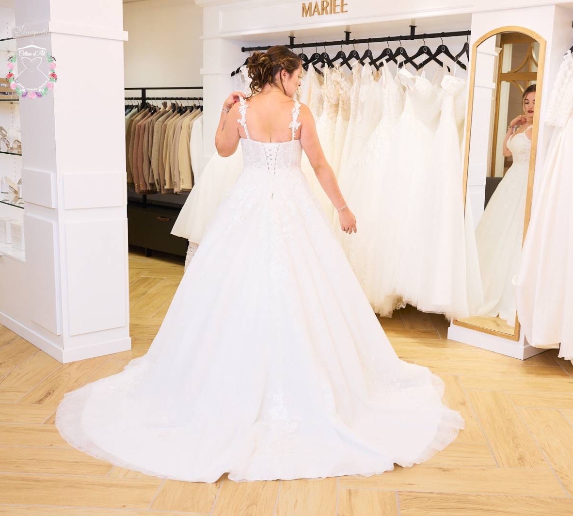 Le modèle Melody est une robe volumineuse et de style princesse.