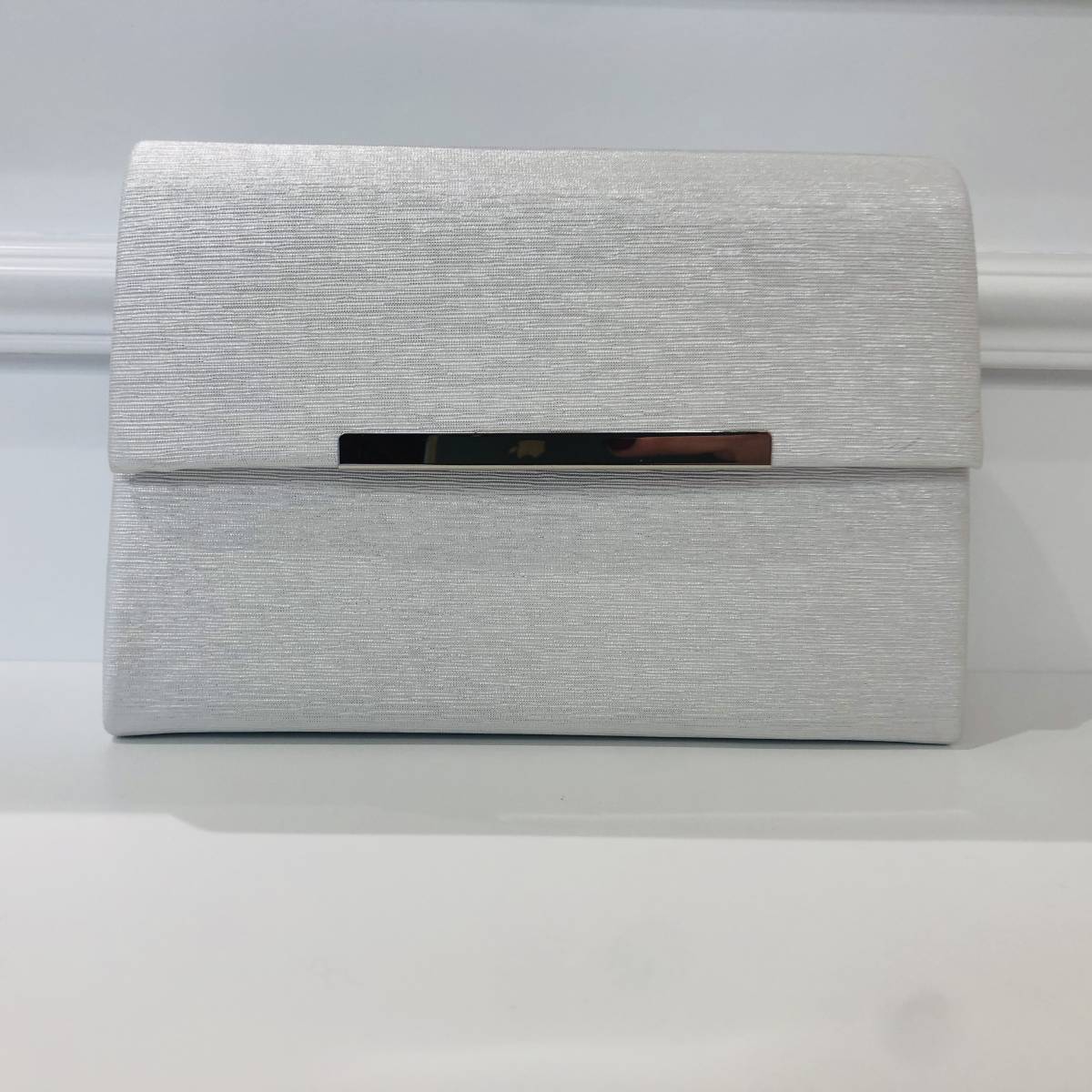Sublimez vos tenues de cérémonie avec cette pochette argentée au design raffiné et lumineux. Confectionnée dans une matière finement texturée aux reflets délicatement brillants, elle capte la lumière avec élégance et apporte une touche sophistiquée à votre silhouette.
