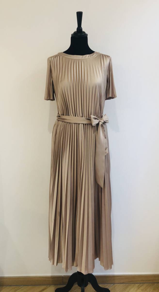 Cette robe de cérémonie plissée incarne l’élégance intemporelle et la sobriété chic.