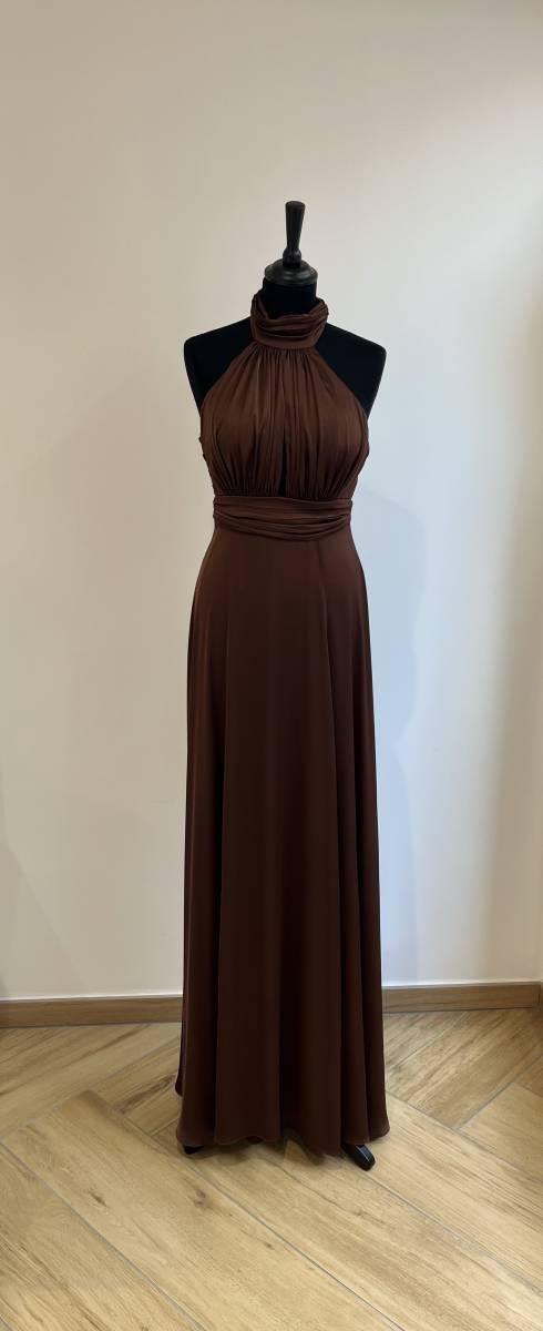 Robe longue en satin marquée à la taille par une ceinture drapée.