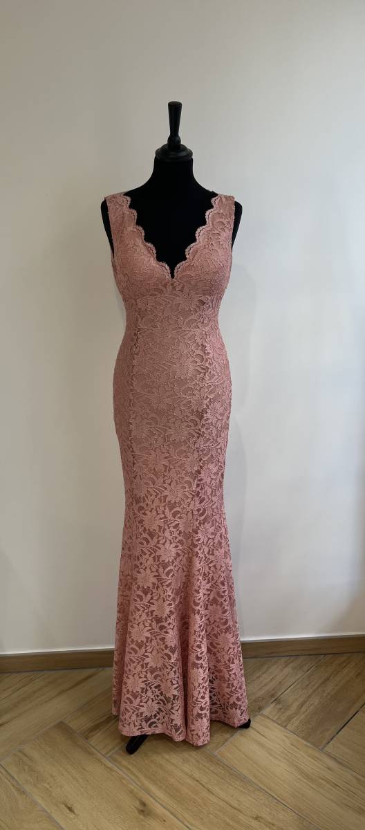 Robe longue toute en dentelle de forme fourreau pour mettre votre silhouette en valeur.