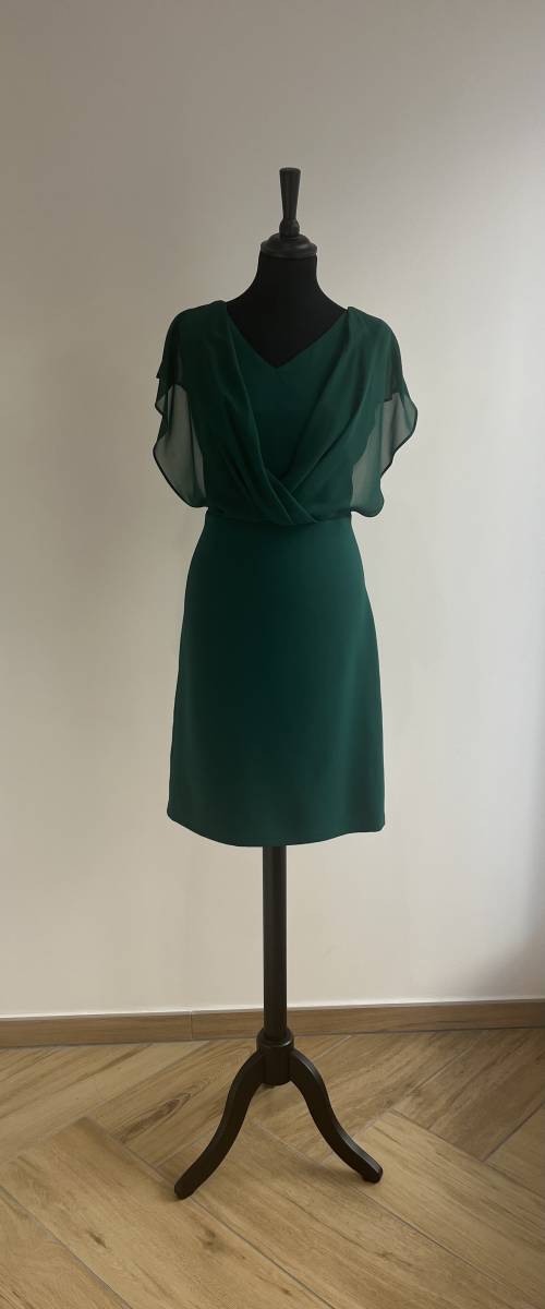 Robe avec petit bout de manches en voilage, à encolure en V.