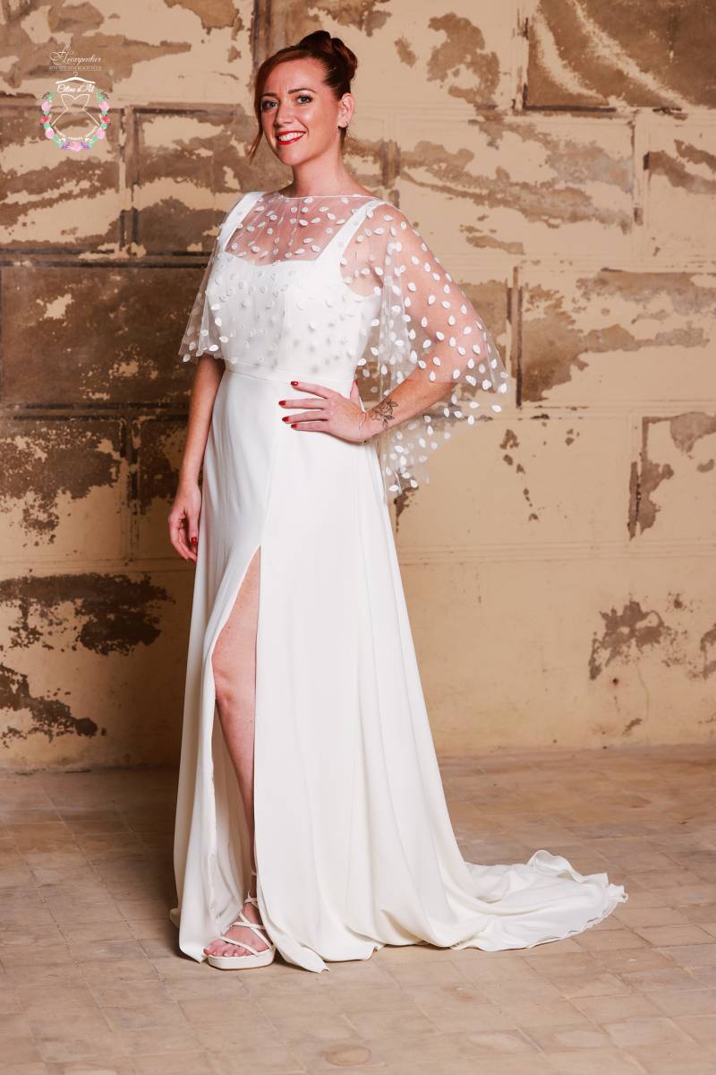 Cette robe peut être agrémentée d'une cape en supplément.